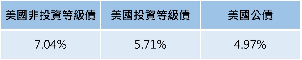 表一、美國經濟溫和成長,非投資級債表現領先(%):