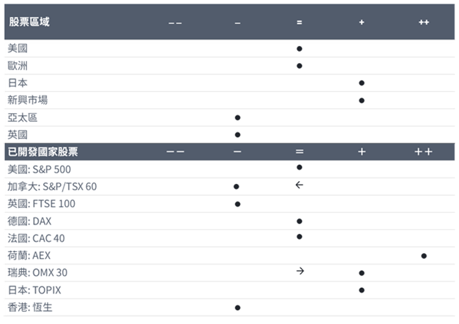 區域觀點:美國保持中性評級,雖然總體經濟和技術面指標大幅下行,但與強勁的行為數據相互抵消。歐洲指數評級除瑞典皆無變動,整體維持中性評級。