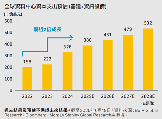 目前市場普遍預期2025年將進入正式降息階段,隨著資金成本降低、企業資本支出回升,雲端服務與資料中心建設投資也將同步增加,全球資料中心資本支出預估將從2024年的約3260億美元成長至2028年的5320億美元,成長幅度接近兩倍。