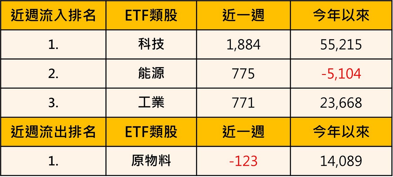 附表二:主要類股ETF資金流向統計(單位:百萬美元)