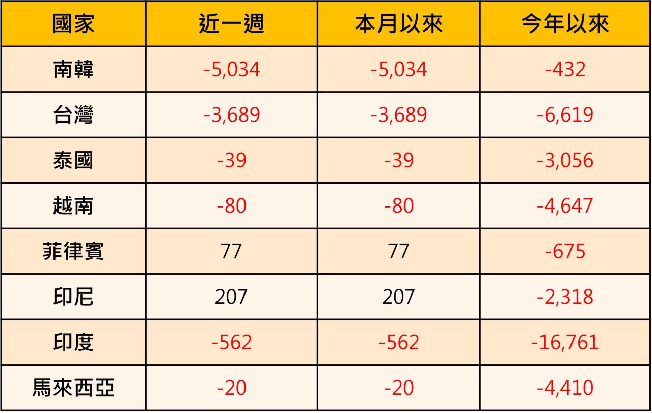 ◎亞洲股市外資動向:外資於整體亞洲轉向為賣超