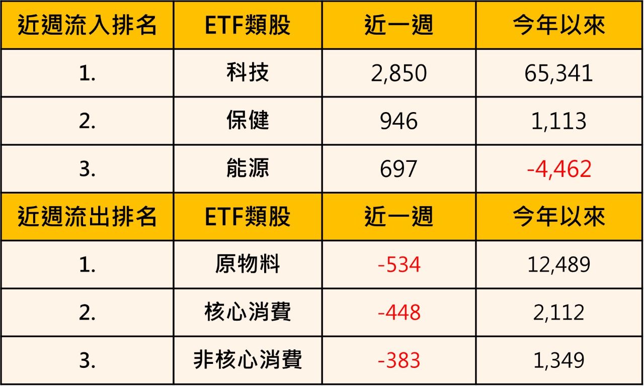 附表二:主要類股ETF資金流向統計(單位:百萬美元)