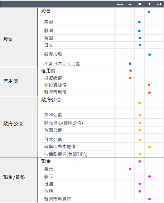 觀點通常反映12-18個月期間,為資產配置決策提供整體出發點,但並非反映當前的投資策略立場,投資策略係根據特定目標與參數執行。