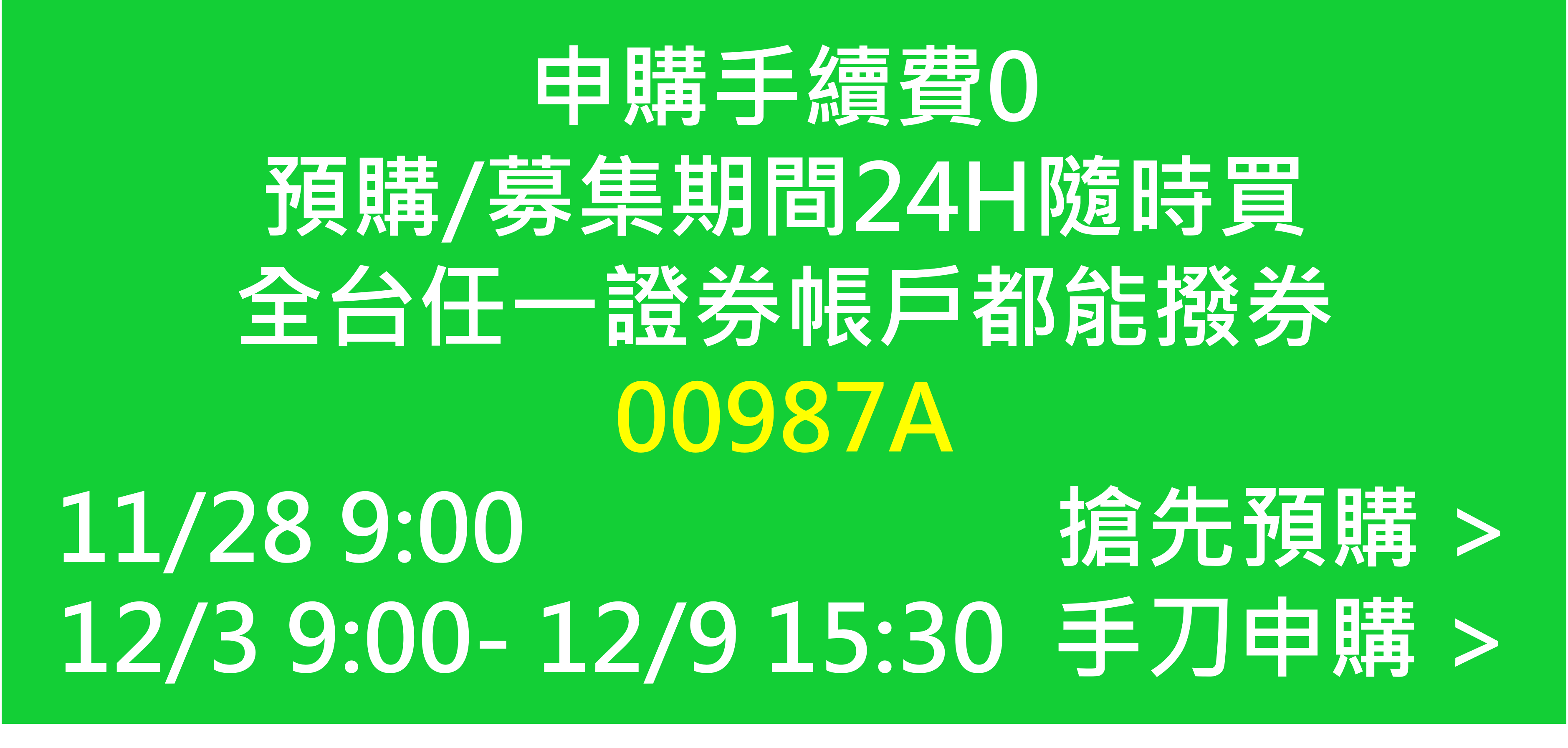 1. 申購時間更彈性:不怕忘記、不怕錯過申購契機,11/28就能搶先預購,預購及募集期間24小時都能買,投資更從從容容、游刃有餘,對於忙碌的上班族超級友善。