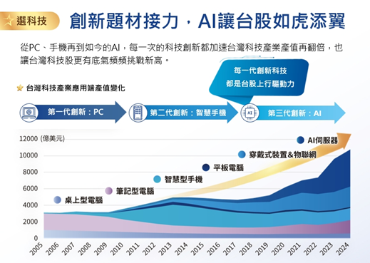 資料來源:群益投信整理。資料時間:2005/1~2024/12。本內容提及之企業或各標的僅供示意,不代表本基金之必然投資配置,本基金之實際配置,經理公司將依實際市場狀況進行調整。投資人申購本基金係持有基金受益憑證,而非本內容提及之投資資產或標的。上述內容提及之市場概況或經濟走勢預測,不代表本基金之走勢及績效,本基金投資風險請詳閱基金公開說明書。主動式交易所交易基金投資目標未追蹤、模擬或複製特定指數之表現,而係經理公司依其所訂投資策略進行投資。證券代號:00992A