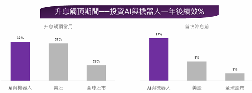 表三:近15年升息觸頂期間投資AI與機器人一年後績效