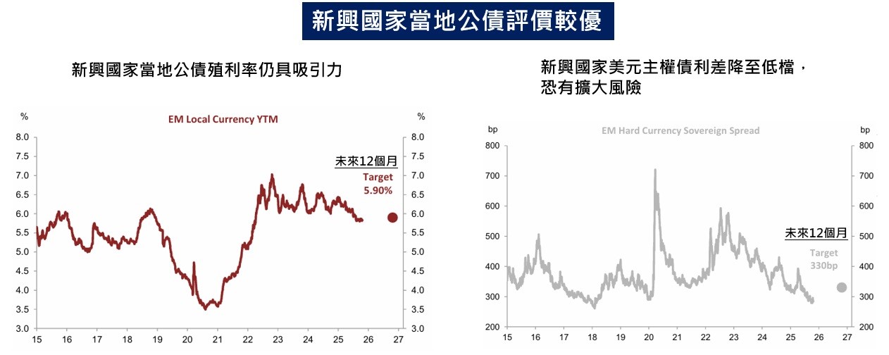 基本面體質轉佳的新興國家債匯市重新獲得國際資金青睞,當前美國面對聯準會繼續降息、美元利差優勢消減且高關稅將損及國內經濟、財政問題沈重等課題,致使美元長期貶值壓力仍在。值此同時,新興國家出現結構性轉機題材,歐洲國家需要匯回資金融通其擴大的國防支出,當海外投資人投入美國資產的力道減弱,將使得評價已貴的美元雪上加霜。