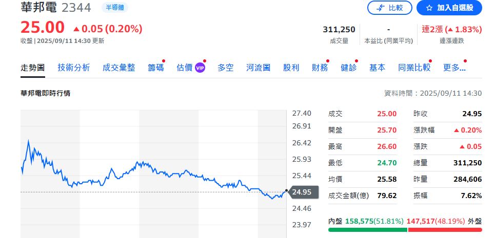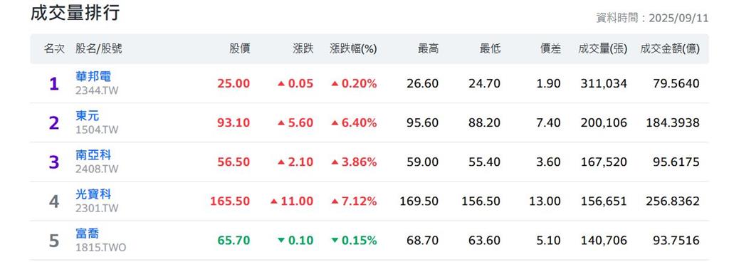 記憶體漲聲響 華邦電.華亞科成交量爆巨量(圖/翻攝自''Yahoo股市'')
