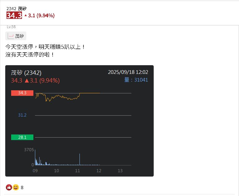 網友看茂矽 漲太兇 竟然喊空(圖/擷取股市同學會)