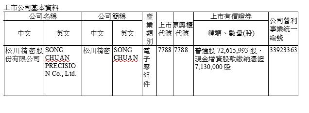 臺灣證券交易所公告松川精密股份有限公司已公開發行普通股股票自114年10月16日開始上市買賣,松川精密股份有限公司係初次上市掛牌,為本(114)年第18家掛牌之本國上市公司。其普通股股票自上市買賣日起五個交易日,股價係採無漲跌幅限制。松川精密以95元掛牌上市,開盤以126塊開出,中籤的投資人賣出就賺三萬元入袋。