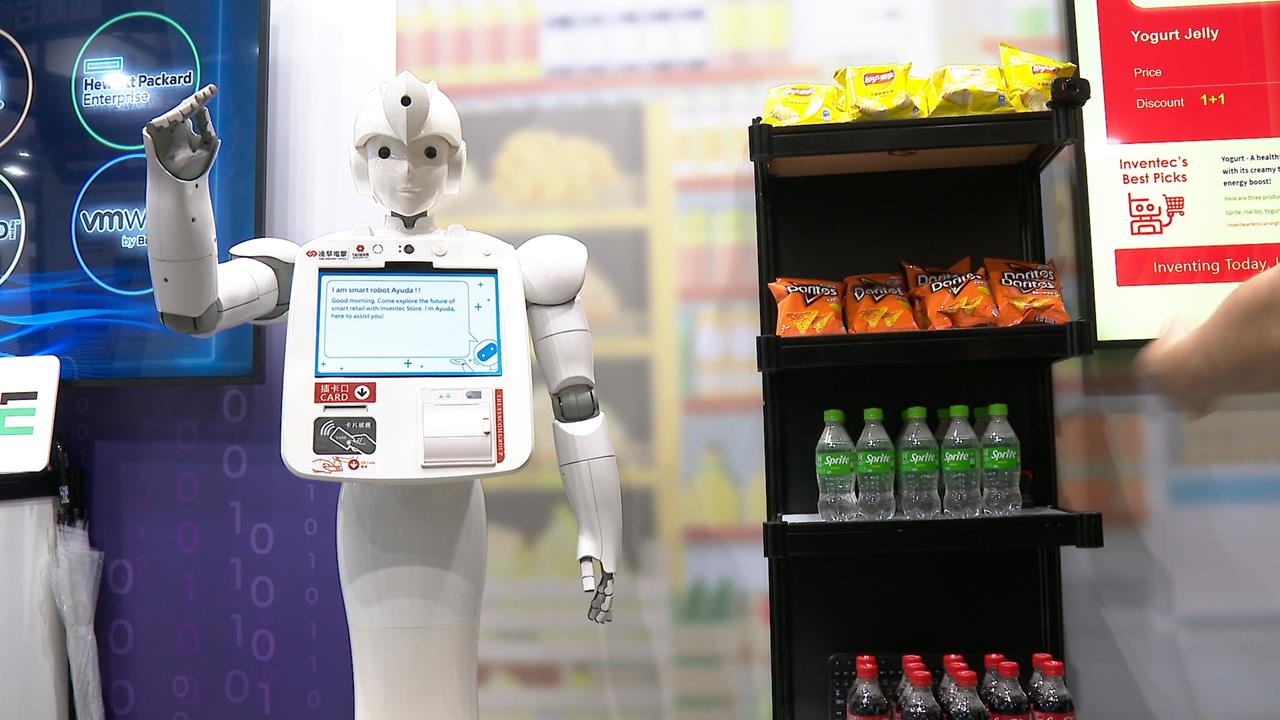 另一款由台日團隊聯手打造的AI智慧機器人,還能幫忙安排會議、預約行程,展現多功能應用。台北電子科技及人工物聯網展,展出各種台灣科技成果。