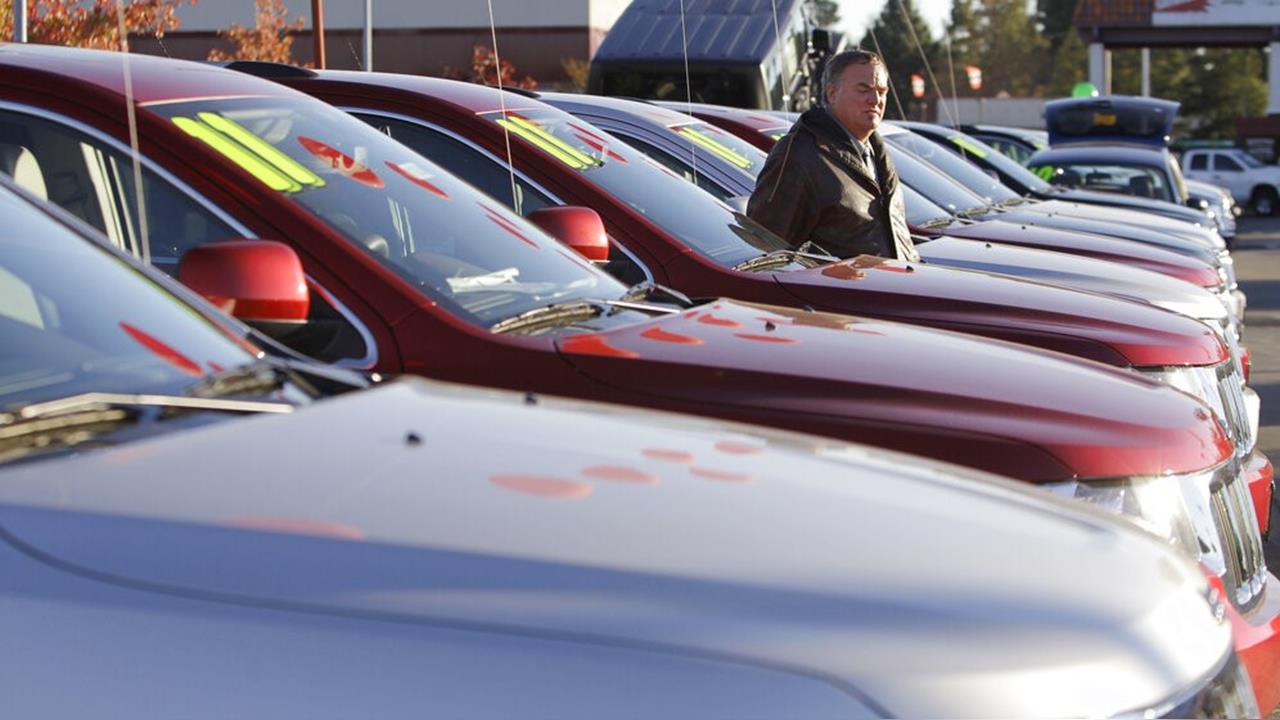 一名男子走過一排待售車輛之間。(示意資料照/美聯社提供)