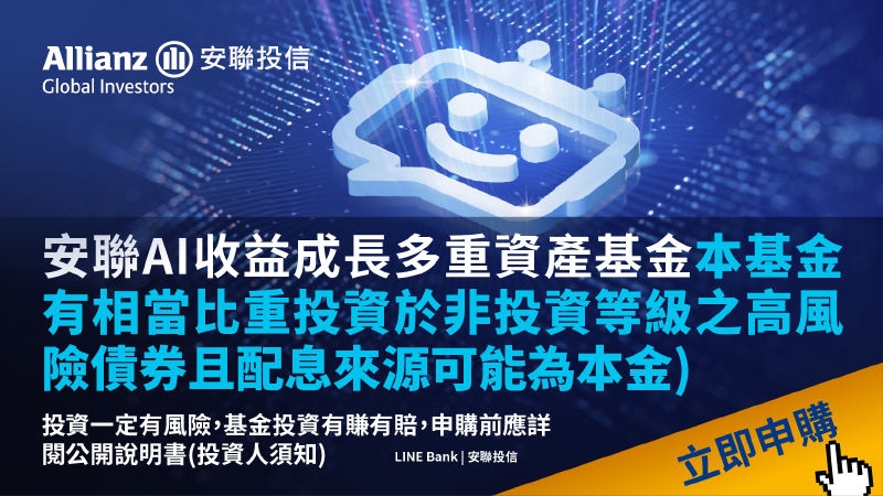 本基金經金管會核准或同意生效,惟不表示絕無風險。基金經理公司以往之經理績效不保證基金之最低投資收益;基金經理公司除盡善良管理人之注意義務外,不負責本基金之盈虧,亦不保證最低之收益,投資人申購前應詳閱基金公開說明書。有關基金應負擔之費用(境外基金含分銷費用)已揭露於基金之公開說明書或投資人須知中,投資人可至公開資訊觀測站或境外基金資訊觀測站中查詢。本基金投資無受存款保險、保險安定基金或其他相關保障機制之保障,投資人須自負盈虧,基金投資可能產生的最大損失為全部本金。本文提及之經濟走勢預測不必然代表本基金之績效,本基金投資風險請詳閱基金公開說明書。由於非投資等級債券之信用評等未達投資等級或未經信用評等,且對利率變動敏感度甚高,故本基金可能會因利率上升、市場流動性下降,或債券發行機構違約不支付本金、利息或破產而蒙受虧損。本基金不適合無法承擔相關風險之投資人。非投資等級債券基金適合欲參與資產具長期增長潛力之投資人。相較於公債與投資級債券,非投資等級債券波動較高,投資人進場布局宜謹慎考量。投資人投資以非投資等級債券為訴求之基金不宜占其投資組合過高之比重。有關境內配息級別受益權單位原則上將每月進行收益分配評估,決定應分配之收益金額,惟不保證每月均執行分配。分配金額若未達新台幣300元、未達美元100元、未達人民幣600元時,當月不予分配;若為銷售機構分配金額未達一定金額時,當月不予分配,並將收益分配再申購配息級別受益權單位,該部分之申購手續費為零,除銀行特定金錢信託外,將轉入再投資。有關境外基金配息金額之決定,係由境外基金機構根據已取得之資本利得及股息收益狀況,並考量基金經理人對於未來市場看法,評估預定之目標配息金額。若本基金因市場因素造成資本利得及股息收益狀況不佳,將可能調降目標配息金額。安聯投信總代理之盧森堡系列基金(AGIF)及其發行之境內基金,配息級別之配息可能由基金的收益或本金中支付(AMg2級別除外),或配息前未先扣除應負擔之相關費用(如AMg、BMg、AMf、BMf等級別)。任何涉及由本金支出的部分,可能導致原始投資金額減損。AMf/BMf固定月配類股的配息預期包括來自該級別之資本利得及淨收益,並按每股資產淨值的某一定百分比計算配息,故每期發放的每股配息金額會有變動。因每股資產淨值每日會有變化,採用的百分比雖一致,但每次實際配息金額可能不同,且百分比率並非保證不調整,固定月配類股於績效為負值之期間,配息通常仍會持續配發且此舉可能會加快投資價值下跌的速度,又因配息採一定百分比計算而非與收益或資本利得連動,故有相對高的可能性會侵蝕本金,若配息金額可能會大於此級別的已實現資本利得及其他淨收益,將導致侵蝕本金。如因配息類股規模大幅減少至一定程度時,境外基金之董事會得依其評估主動將該類股併入同基金之其它配息類股。以穩定配息為目標的配息股份會定期檢視且可能調整預定配息金額。預定配息金額如有變動將不另行通知股東。基金配息不代表基金實際報酬,且過去配息不代表未來配息;基金淨值可能因市場因素而上下波動。本公司於公司網站揭露各配息型基金近12個月內由本金支付配息之相關資料供查詢,投資人於申購時應謹慎考量。本基金可能投資於美國Rule 144A債券,該債券屬私募性質,較可能發生流動性不足,財務訊息揭露不完整或因價格不透明導致波動性較大之風險,投資人投資前須留意相關風險。基金投資地區包含中國及香港,可能因產業循環或非經濟因素導致價格劇烈波動,以及市場機制不如已開發市場健全,產生流動性不足風險,而使資產價值受不同程度之影響,投資前請詳閱基金公開說明書有關投資風險之說明。經理公司為避免新臺幣及人民幣兌美元的匯率波動所衍生之匯率風險而影響新臺幣計價(避險)及人民幣計價(避險)各類型受益權單位淨資產價值,經理公司將持續就新臺幣計價(避險)及人民幣計價(避險)各類型受益權單位資產進行匯率避險交易,惟匯率避險交易僅能適度降低匯率波動對該受益權單位淨資產價值之影響,故倘若新臺幣及人民幣相對於美元匯率上升,此等避險可能為該等投資人提供獲利報酬;反之,則亦可能造成投資人之損失。此外,任何匯率避險交易所衍生之結匯成本均依新臺幣計價(避險)及人民幣計價(避險)各類型受益權單位受益人按比例負擔。本基金可投資於轉換公司債,由於轉換公司債同時兼具債券與股票之特性,因此除利率風險、流動性風險及信用風險外,還可能因標的股票價格波動而造成該轉換公司債之價格波動,此外,非投資等級或未經信用評等之轉換公司債所承受之信用風險相對較高。基金如投資於固定收益商品,其投資風險包括但不限於信用風險、利率風險、流動性風險及交易可能受限制之風險等。經濟環境及市況之改變亦可能影響前述風險程度,以致影響投資價值。一般而言,當名目利率走升時,固定收益投資工具(含空頭部位)之價值可能下降,反之則可能上升。流動性風險則可能延後或限制交易之贖回或付款。新興市場證券之波動性與風險程度可能較高,且其政治與經濟情勢穩定度通常低於已開發國家,可能影響本基金所投資地區之有價證券價格波動,而使資產價值受不同程度
